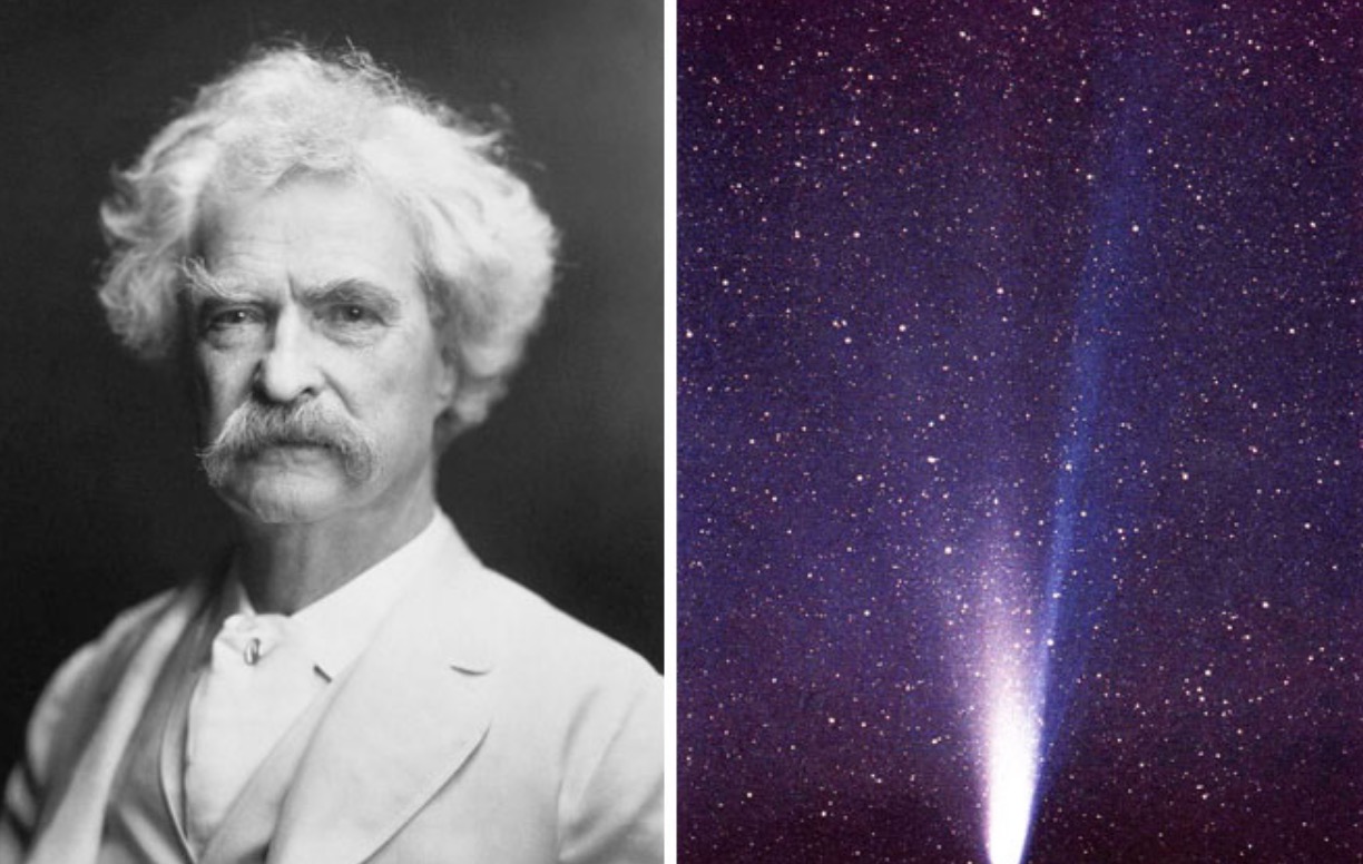 Më 30 nëntor 1835 në Florida lindi Mark Tuein, teksa në qiell po fluturonte kometa Hallej, që kthehet në afërsi të Tokës çdo 75 vjet. Në vitin 1909, Tuein ishte 74 vjeç, dhe që kur ishte në të 20-at kishte parashikuar se ashtu si në lindje, edhe kur të vdiste, kometa do të ishte e dukshme në qiell.
