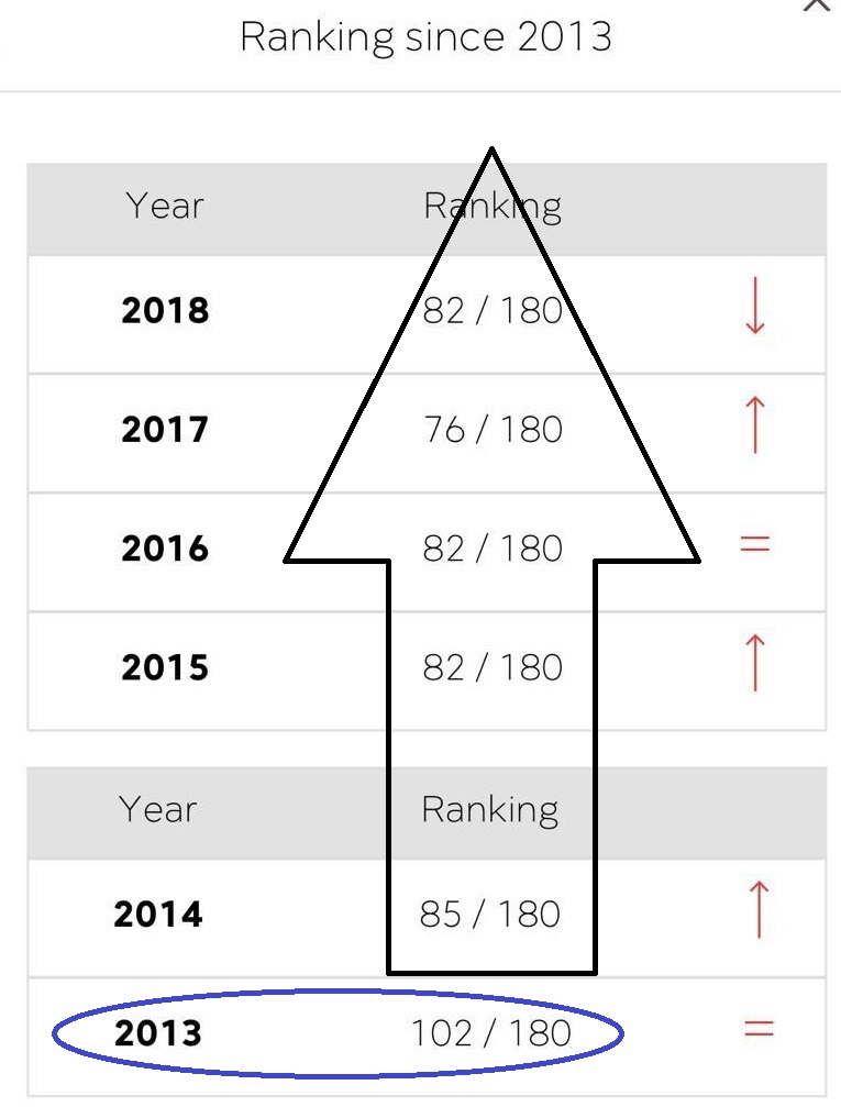 Por duket se PD ka bërë një ‘autogol’. Kjo sepse Shqipëria në vitin 2013 kur qeveria drejtohej nga Sali Berisha, rënditej në vendin e 102 nga 180 vende.
